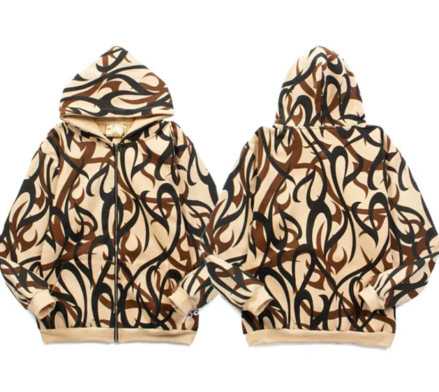 T.S Thorns Pattern Zip-Up Cardigan Hoodie