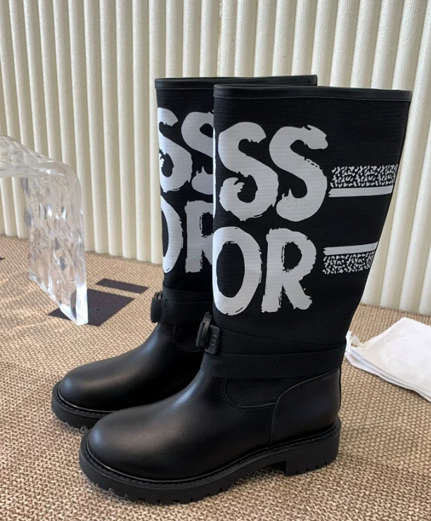 Trendy D-letter thick-soled knee- high boots