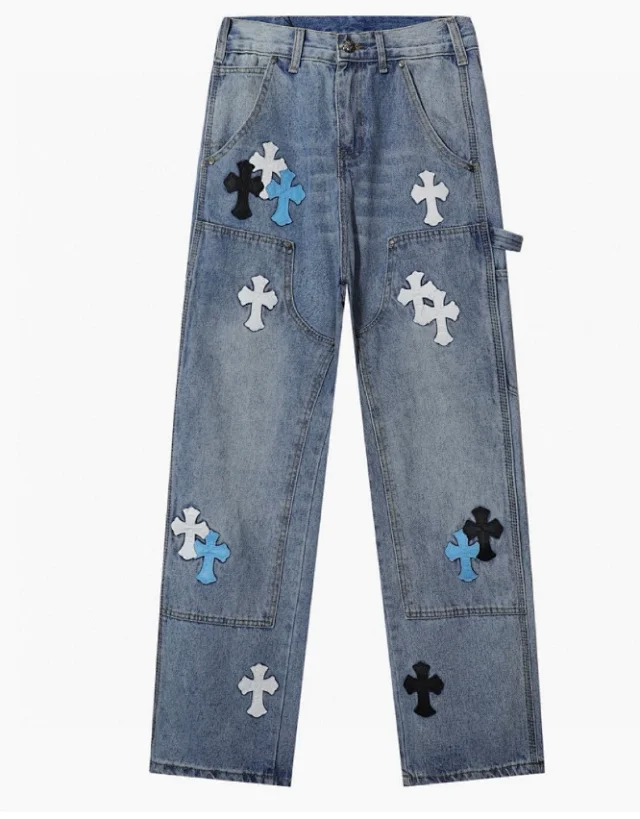 CH Fashion8 Letter Cross Patch Casual Jeans