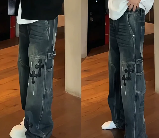 You can buy this CH Trendy Fashion6 Cross Patch Leopard Print Spliced Jeans go to Weidian