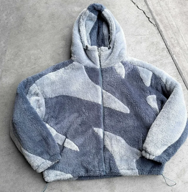 Faux fur patchwork zip-up hoodie