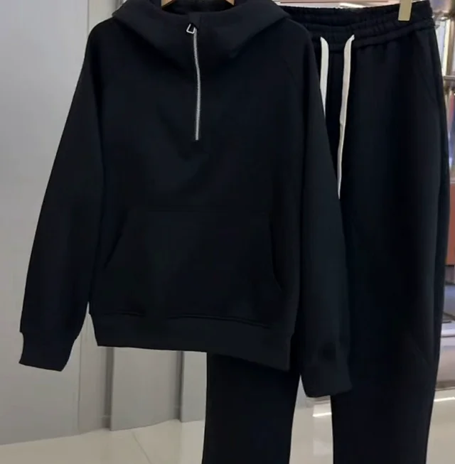 Fashion Half-Zip Pullover Hoodie and Pants Loose Casual Set1
