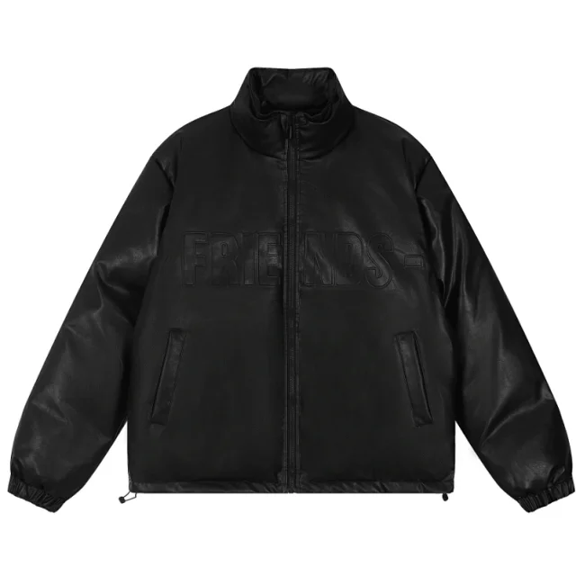 V NE Fashion Casual Leather Jacket with Black Letter Pattern