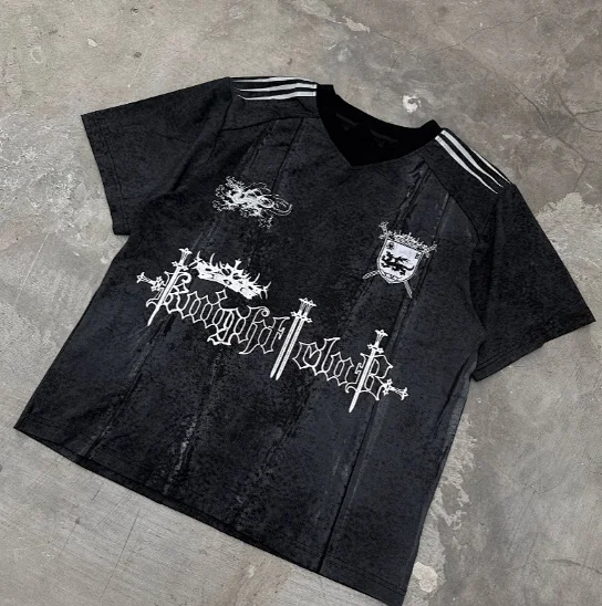 AR street washed, distressed heavyweight fashion brand T-shirt, direct spray print, short sleeves