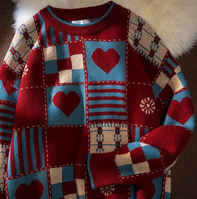 Fashionable Casual Pattern Four-Thread Knit Long-Sleeve Sweater