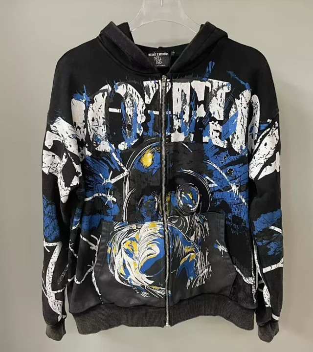 AC wash distressed frayed 1996 letter hoodie sweatshirt