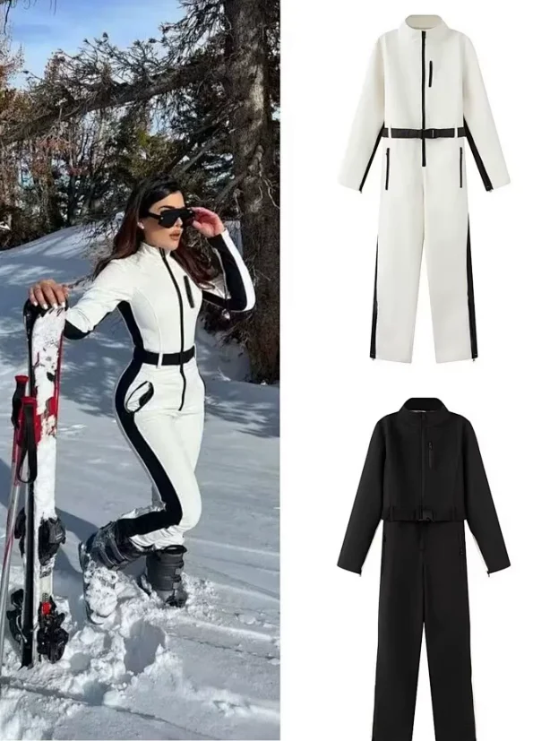 Fashionable versatile cinched-waist jumpsuit ski padded jacket