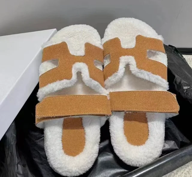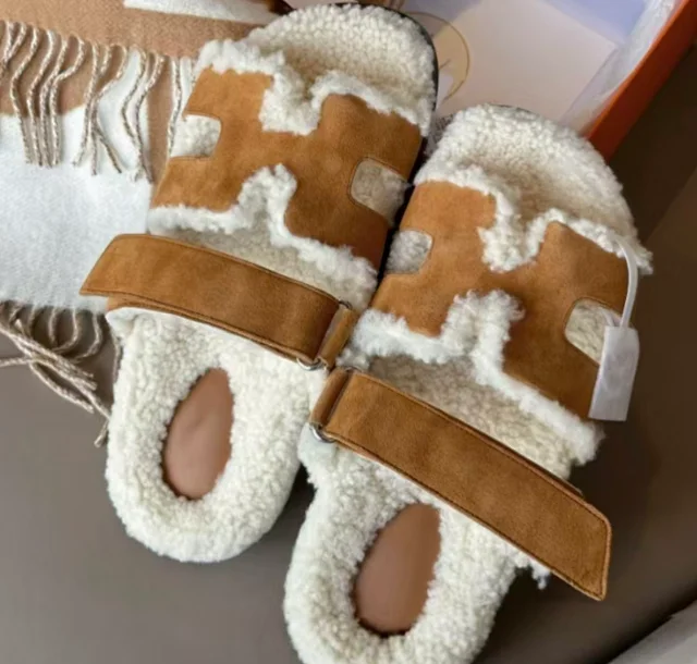 Warm Velcro Casual Flat Thick-Soled Fleece Slippers