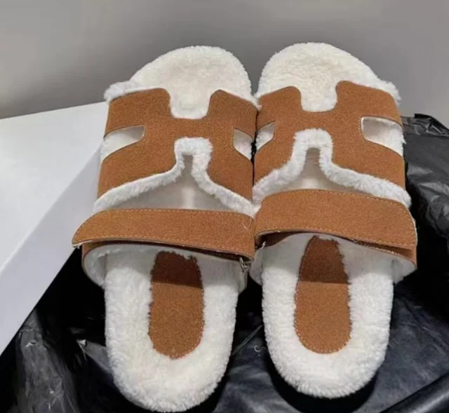 Warm Velcro Casual Flat Thick-Soled Fleece Slippers