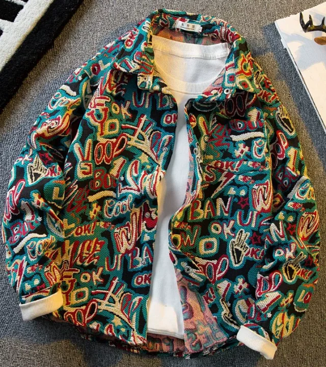 Knitted colorful coat fashionable couple's jacket top