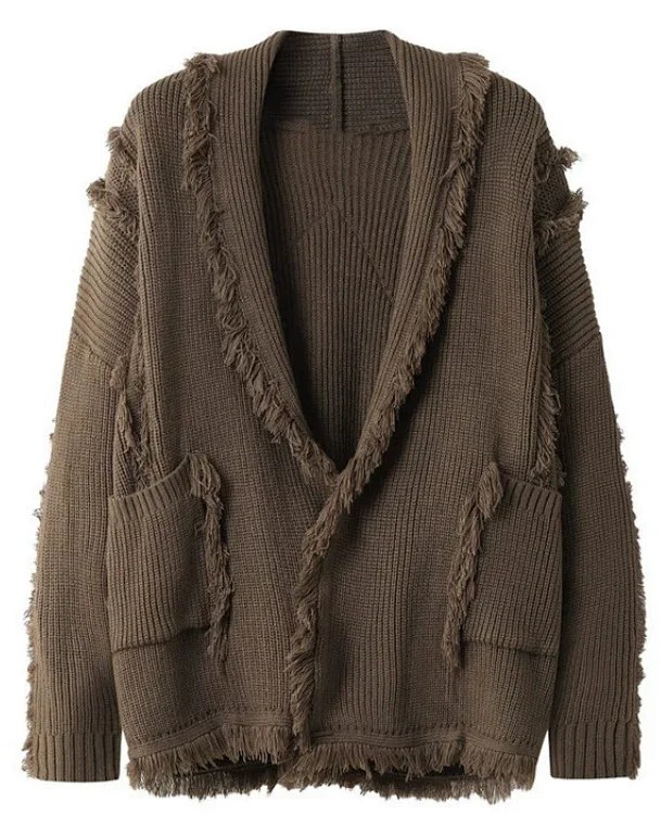 Knitted cardigan with pockets, retro couple's loose sweater2