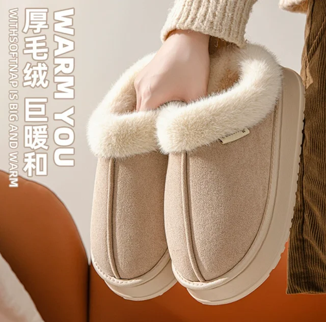 Winter indoor home thick-soled non-slip outer wear with a bag and heel warm fleece cotton slippers