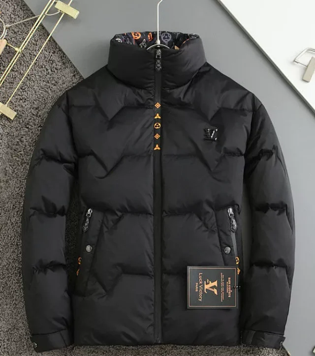 Men's Winter Casual Stand Collar White Fleece Down Jacket with Metal Logo, Warm Coat
