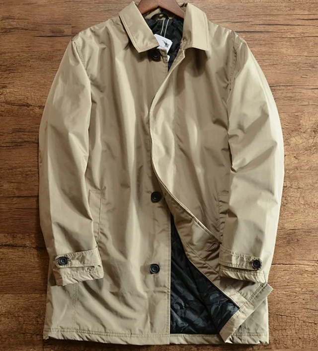 Waterproof, tear-resistant, quilted, warm mid-length trench coat