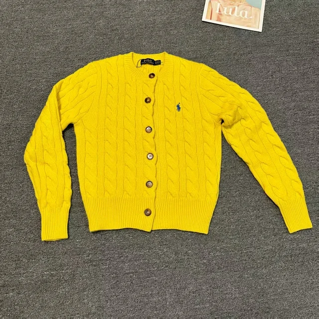 RL Twist Plush Crew Neck Simple Knit Cardigan Sweater1