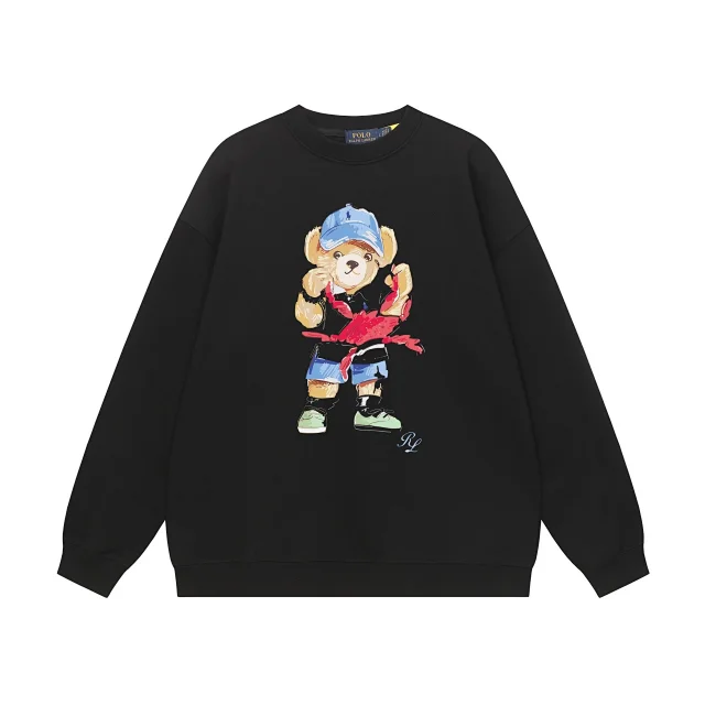 Fashionable Trendy Bear Letter Crewneck Terry Sweatshirt1