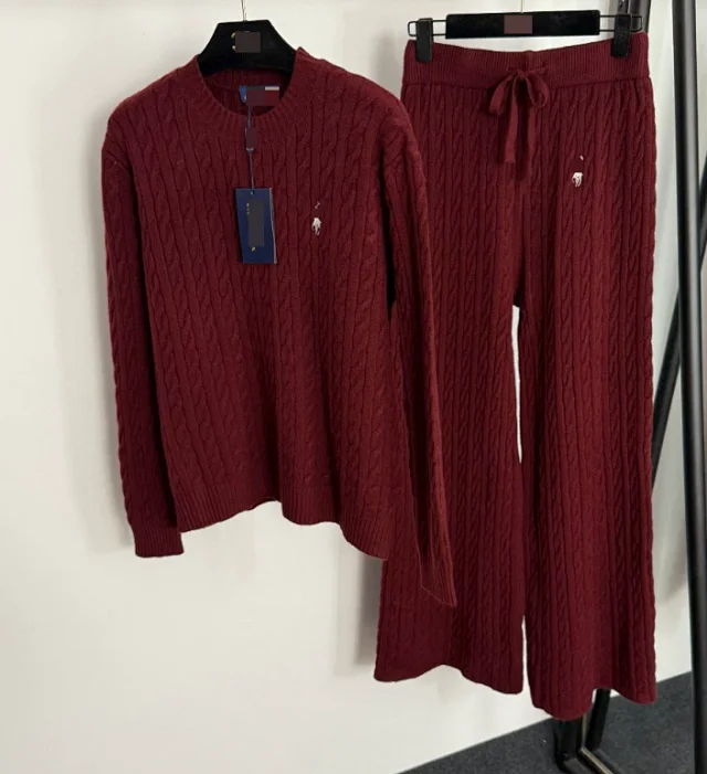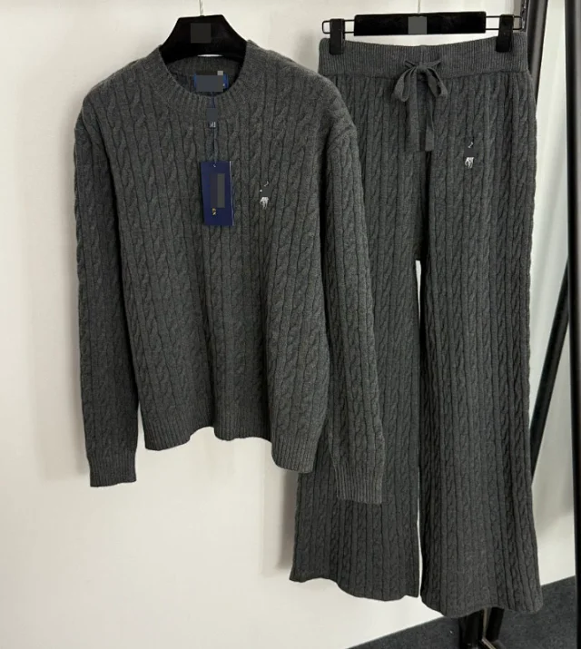 RL Twisted Striped Knit Sweater with Drawstring High-Waist Casual Pants Set1