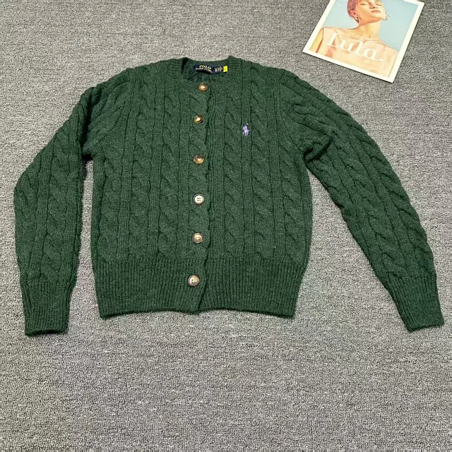 RL Warm and Versatile Crew Neck Simple Knit Cardigan Sweater