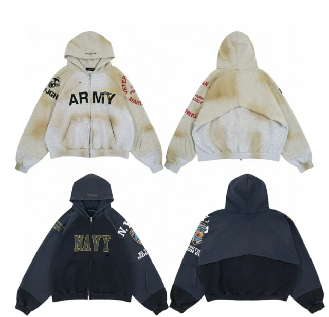 Heavyweight Patchwork Distressed Hoodie Cardigan