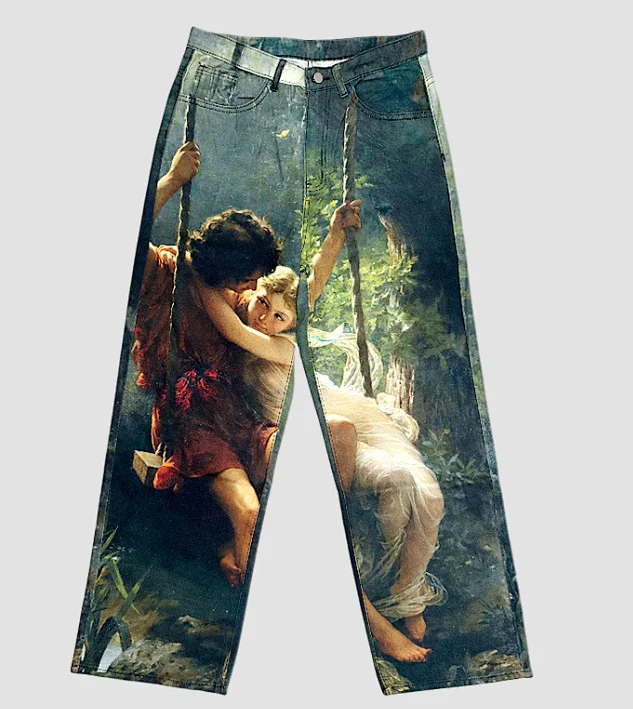 ALP trendy brand cashew flower splash ink couple washed jeans