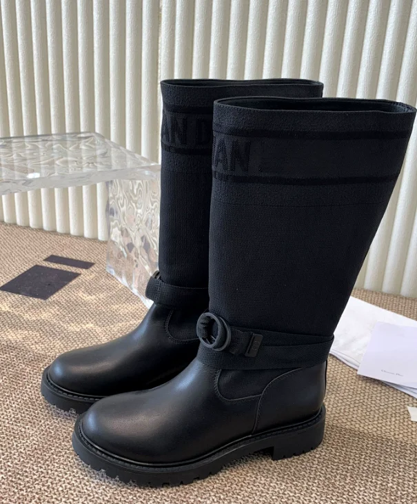 Trendy D-letter thick-soled knee-high boots