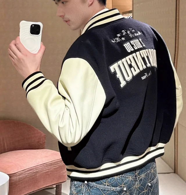 Trendy Patchwork Waist-Tied Baseball Jacket1