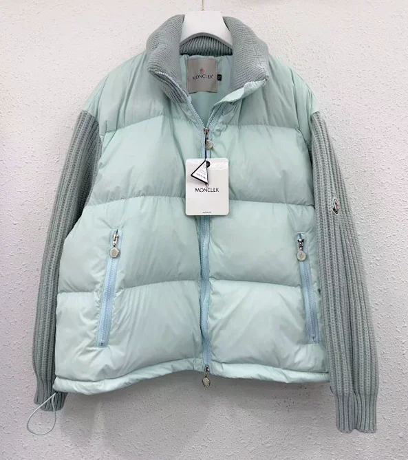 Minimalist knitted sleeve splicing high-neck zipper down jacket2