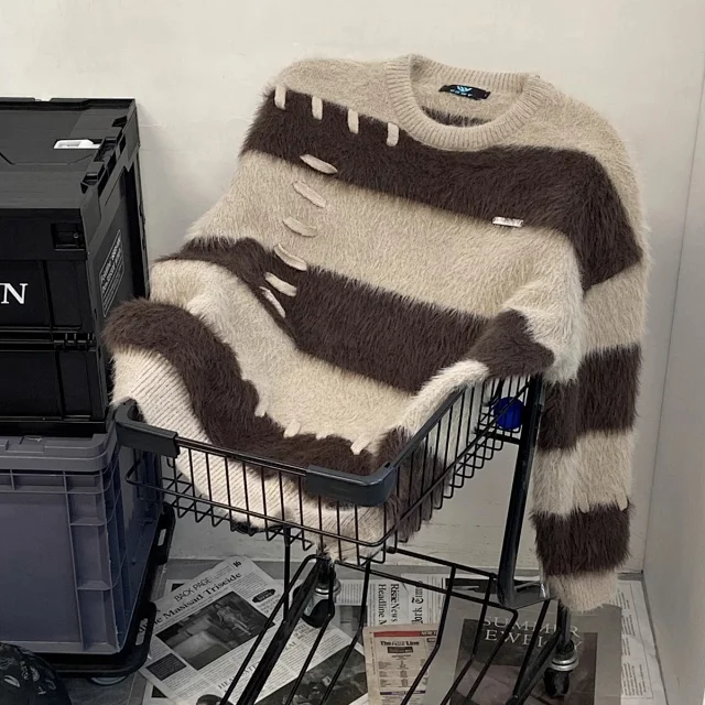 Comfortable Couples Casual Color-Block Striped Crew Neck Sweater1