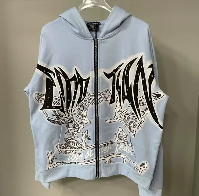 MIX Bird Letter Pattern Zipper Hoodie Jacket